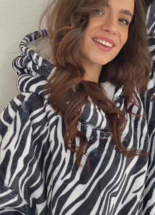 Couverture à Capuche Zèbre – style audacieux, chaleur douillette et touche sauvage